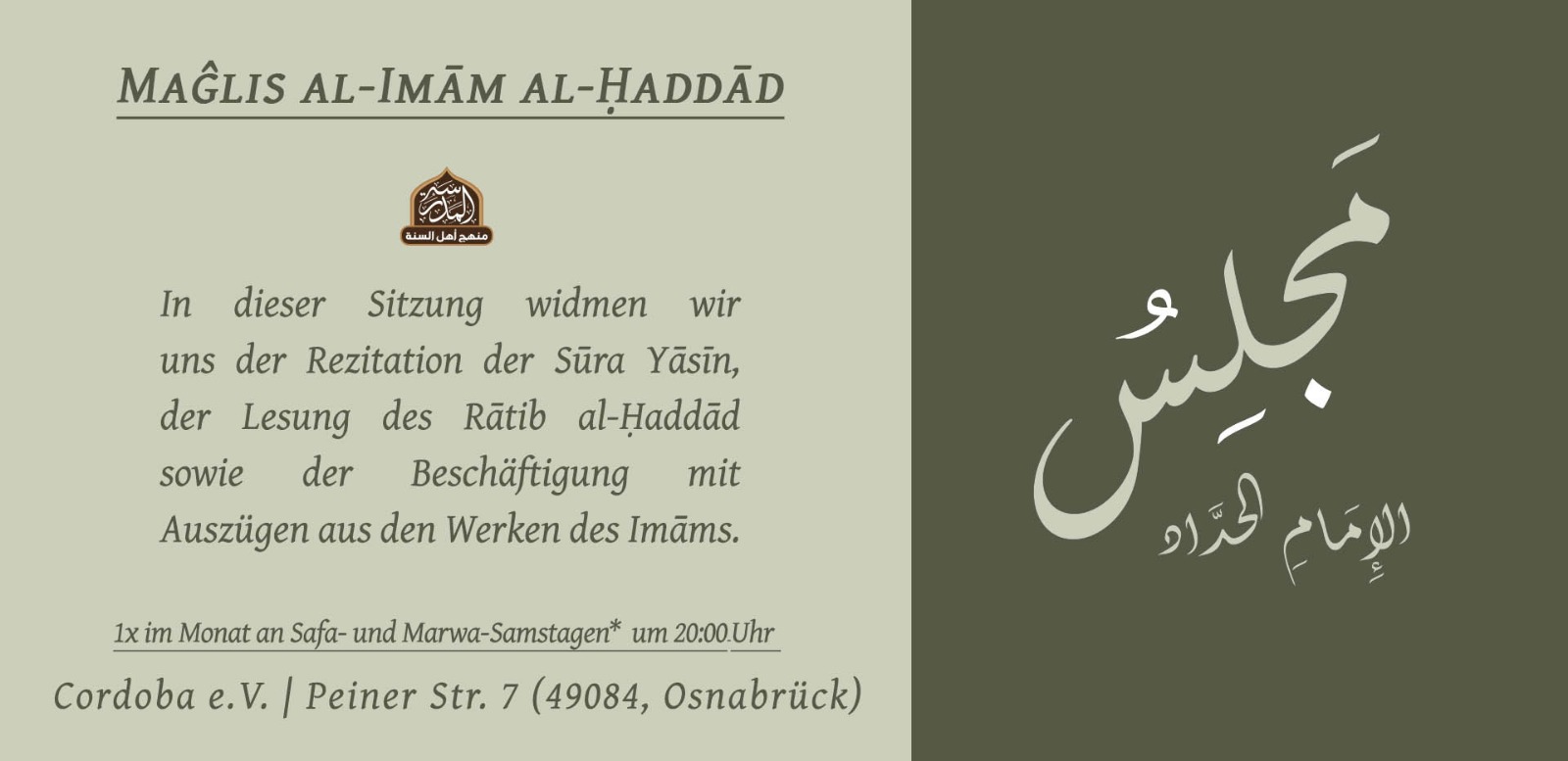 MAJLIS IMAM AL-HADDAD Mit Ustadh Dr. Mahmud Kellner 27. Mai 2026 | 19:00 Uhr Afrikanische Gemeinde Nürnberg Wölkernstraße 78 90459 Nürnberg Offen für Damen und Herren Weitere Termine: Mi 19.11.2025, […]